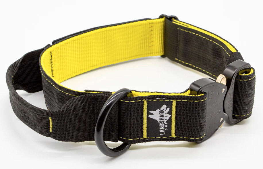 Landshark supply is available in various sizes to accommodate different dog sizes. It's complemented with a high-quality thread, often color coordinated.