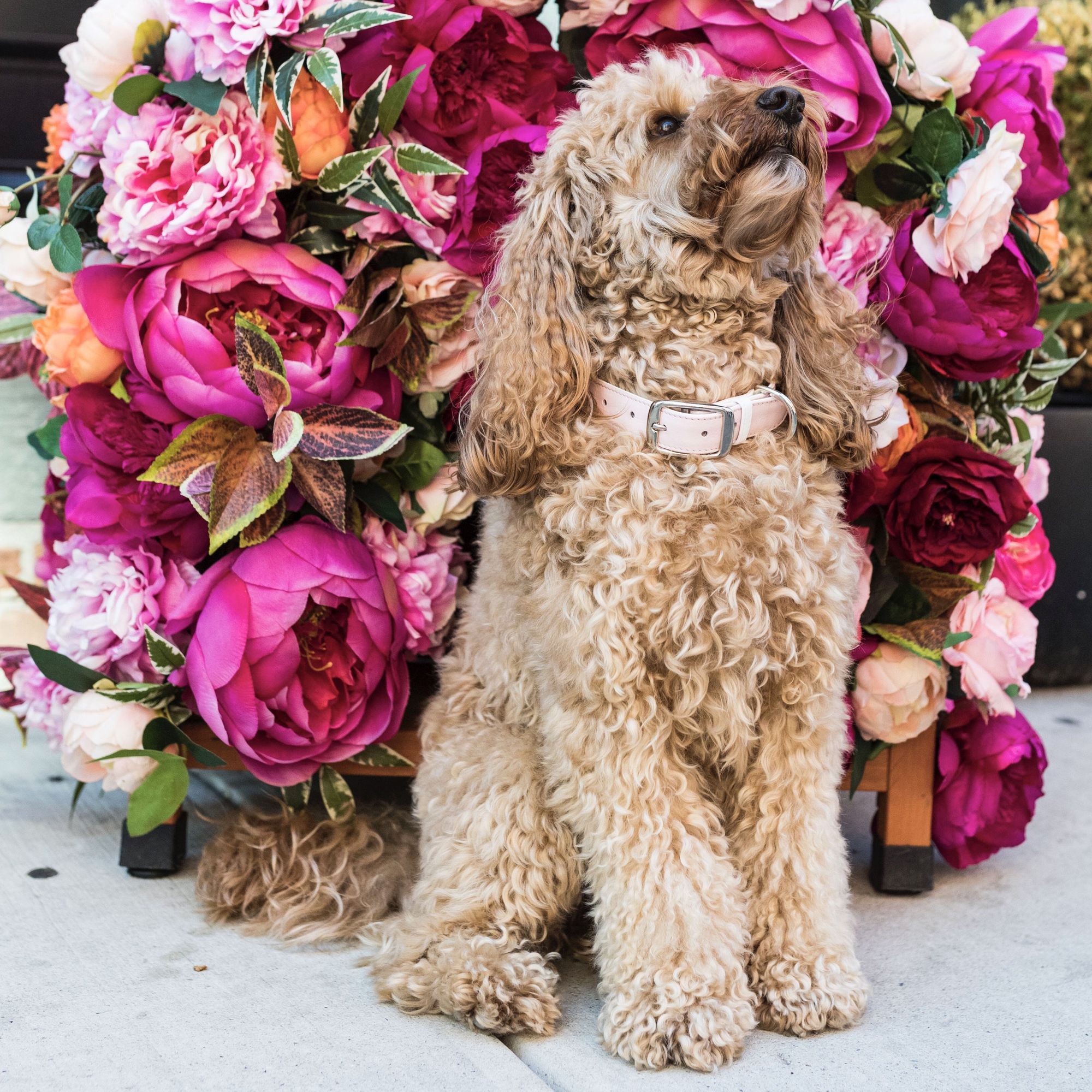 This perfect peach walk set is another summer must-have. This Fi compatible collar and matching leash feature stainless steel, rust-free hardware, buckles that are jam-free from sand and dust, and are mildew and odor free. The collar also has webbing behind the module, offering even more strength and durability on your summer adventures. This is your exclusive Fi dog sneak peak of this hot summer design... this peach print is coming to Designs By Wildside very soon :)