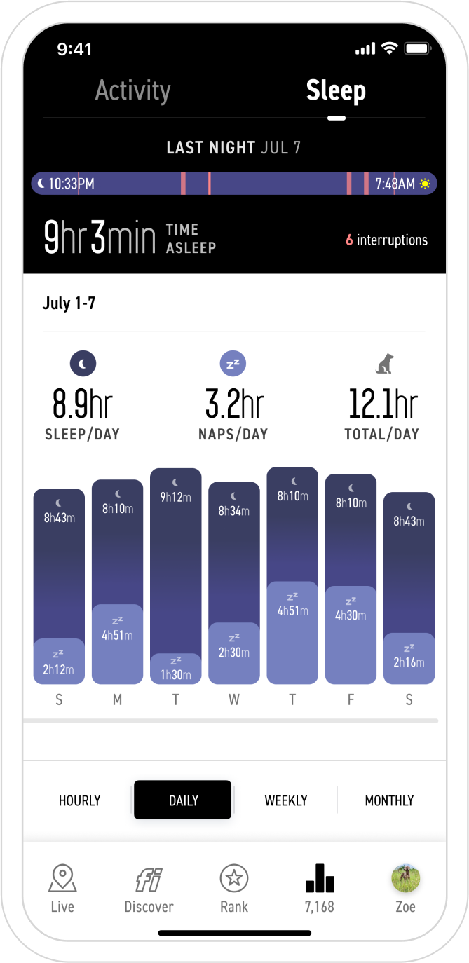 Just like for humans, sleep is critical for dogs’ health and serves as a strong indicator of new health issues. With Fi’s combination of location, sleep and fitness tracking, owners can instantly identify red flags around their pet’s health — like a sudden decrease in activity or interrupted sleep pattern — and make important, early health decisions for their dog.