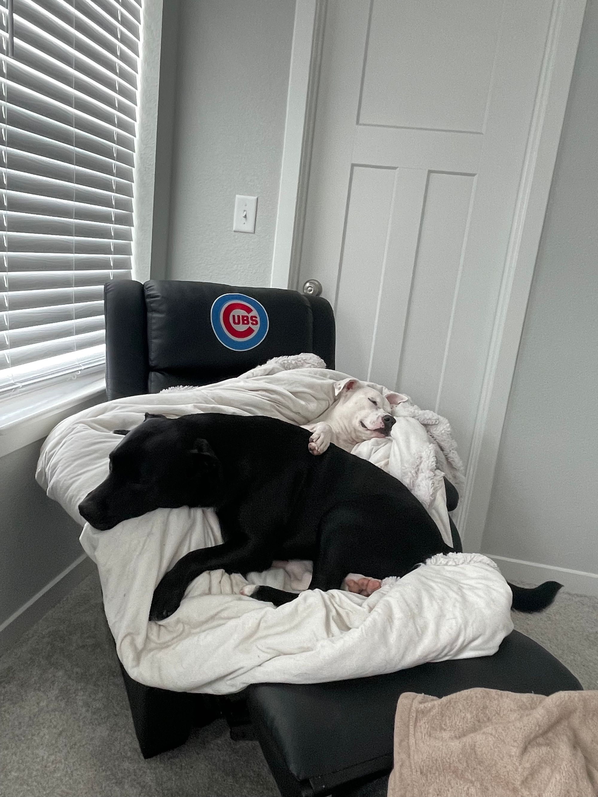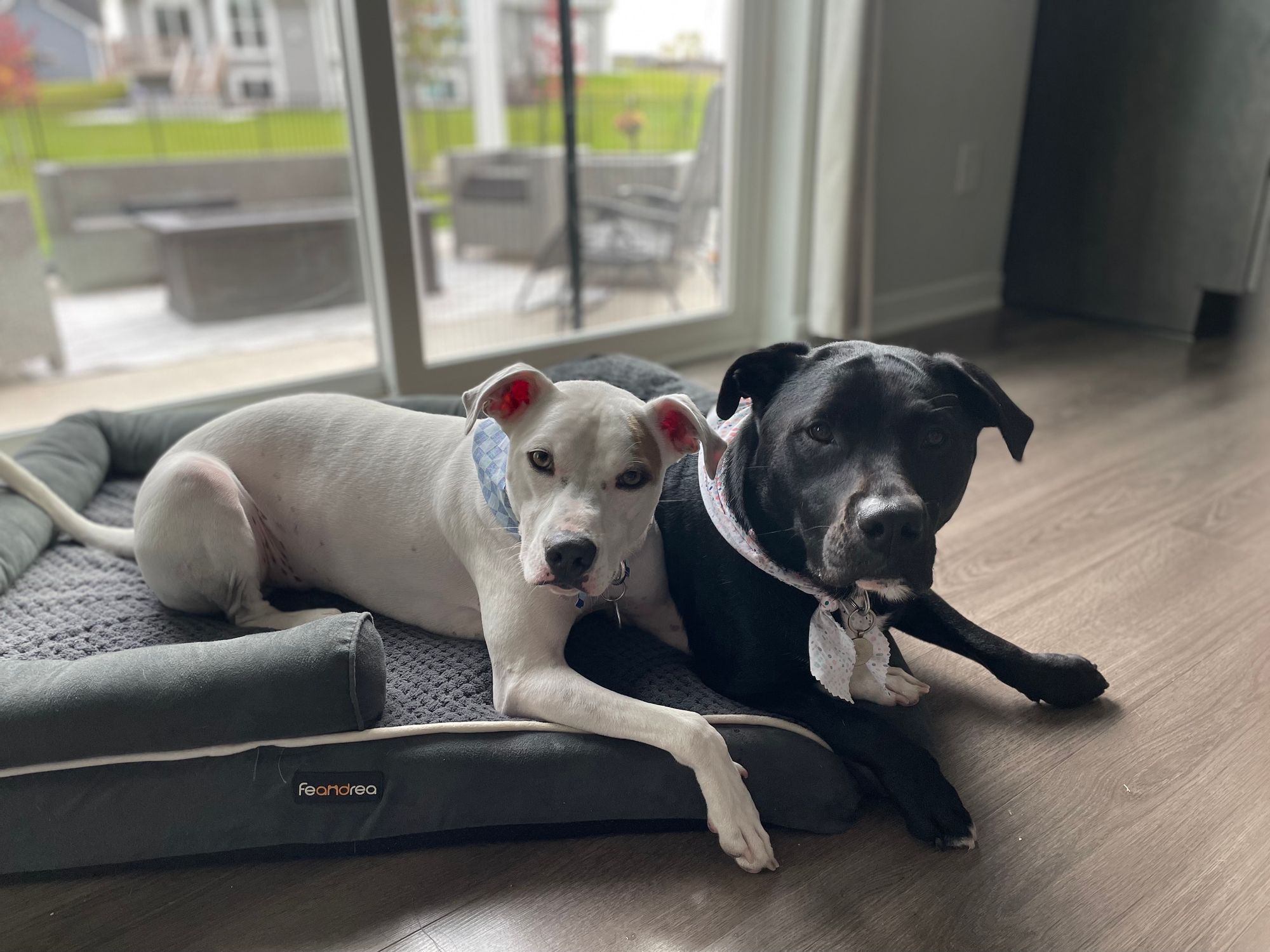 - Most of my pictures below have my dog Wrigley (black) and Loki (white) as they are inseparable, so it's hard to find one with just him!