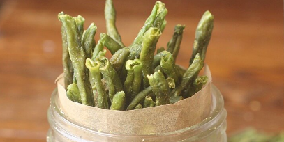 - Evenly spread green beans on dehydrator trays, allow space between for air to pass through while drying