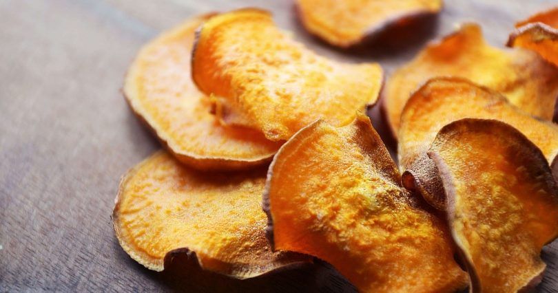 - Dehydrate at between 120F and 130F for 8 to 12 hours (time needed depends on how thick your sweet potato slices are)