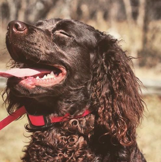 These medium-sized dogs have a distinctive curly, liver-colored coat and an enthusiastic personality.